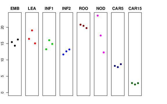 | ROO | Roots from the seedlings (10 cm shoot stage) | 20.8215 | 20.4615 | 19.7707 | 22.2534 |