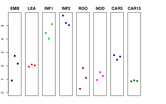 | INF2 | Developing inflorescences (1-1.5 cm) | 5.75653 | 5.2058 | 5.03975 | 5.67432 |