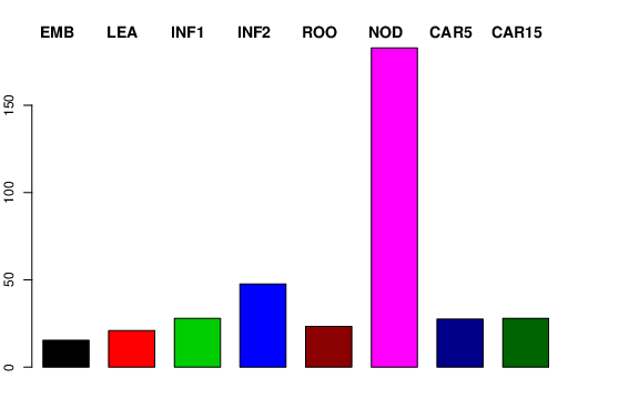 | NOD | Developing tillers at six leaf stage, 3rd internode | 15.6685 | 36.9881 | 34.459 | 182.839 |