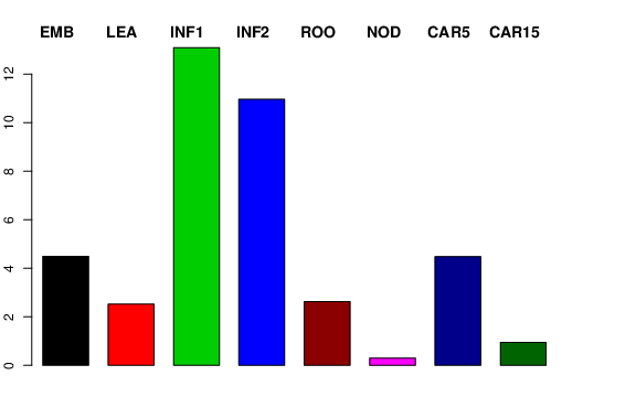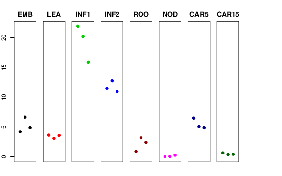 | ROO | Roots from the seedlings (10 cm shoot stage) | 0.88656 | 3.14551 | 2.40136 | 2.62567 |