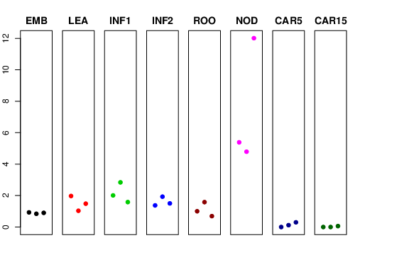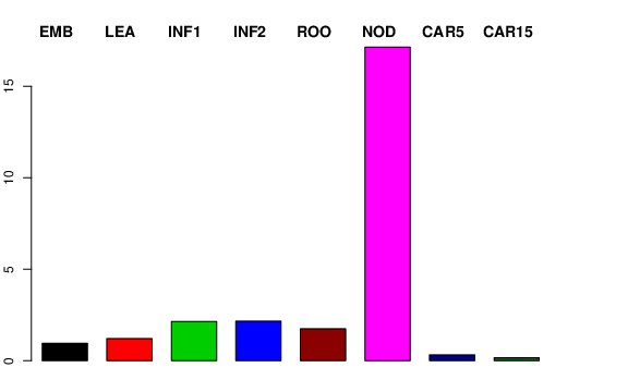 | ROO | Roots from the seedlings (10 cm shoot stage) | 1.00288 | 1.58407 | 0.693586 | 1.73906 |