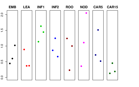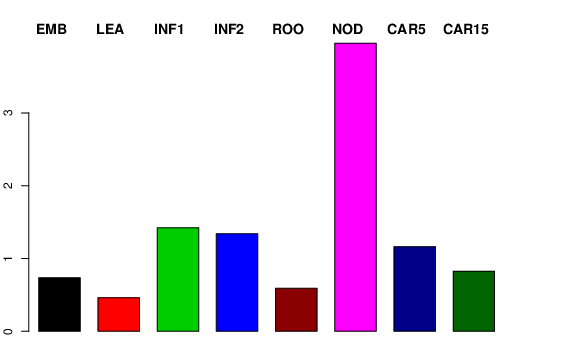 | ROO | Roots from the seedlings (10 cm shoot stage) | 1.24141 | 0.231838 | 1.00098 | 0.589505 |