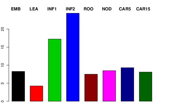 | ROO | Roots from the seedlings (10 cm shoot stage) | 6.81191 | 10.6371 | 9.54577 | 7.48793 |