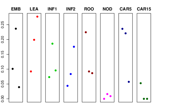 | ROO | Roots from the seedlings (10 cm shoot stage) | 0.224433 | 0.0922287 | 0.0864949 | 0.128419 |