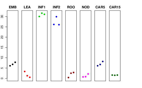 | ROO | Roots from the seedlings (10 cm shoot stage) | 0.381235 | 2.49136 | 2.84005 | 2.95338 |