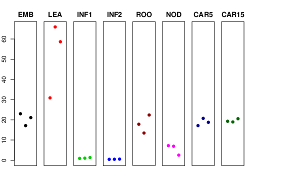 | ROO | Roots from the seedlings (10 cm shoot stage) | 17.8325 | 13.4732 | 22.3984 | 19.2399 |