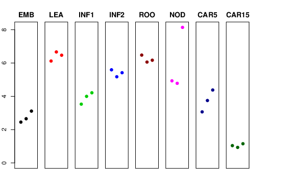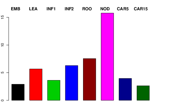 | ROO | Roots from the seedlings (10 cm shoot stage) | 6.47458 | 6.05686 | 6.16684 | 7.54644 |