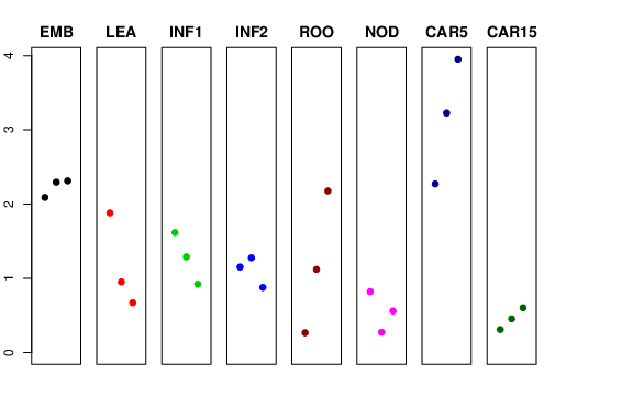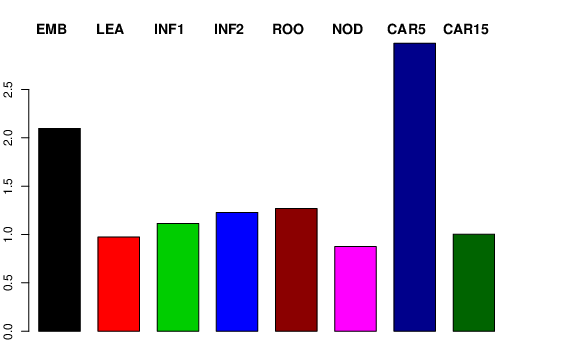 | ROO | Roots from the seedlings (10 cm shoot stage) | 0.266335 | 1.12083 | 2.17891 | 1.26885 |