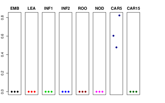 | ROO | Roots from the seedlings (10 cm shoot stage) | 0 | 0 | 0 | 0 |