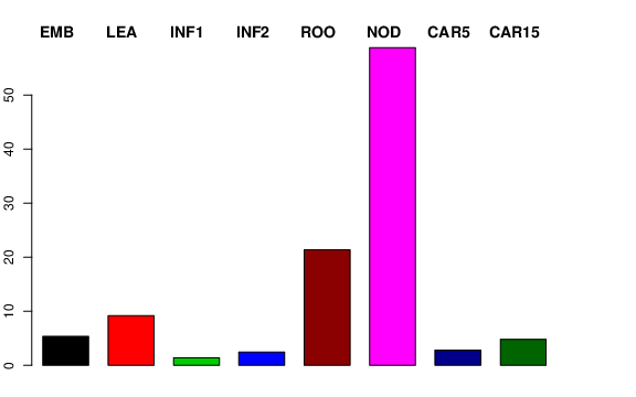 | ROO | Roots from the seedlings (10 cm shoot stage) | 9.91174 | 13.0399 | 13.1141 | 21.3405 |