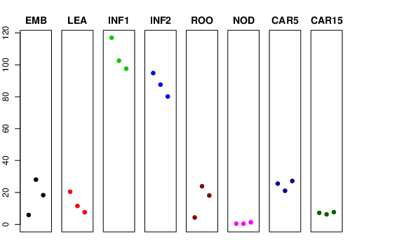 | ROO | Roots from the seedlings (10 cm shoot stage) | 4.31379 | 23.8851 | 18.0889 | 0 |