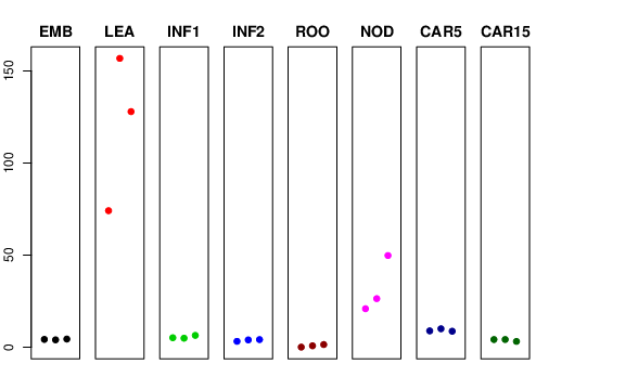 | ROO | Roots from the seedlings (10 cm shoot stage) | 0.0601498 | 0.77767 | 1.43666 | 1.08961 |