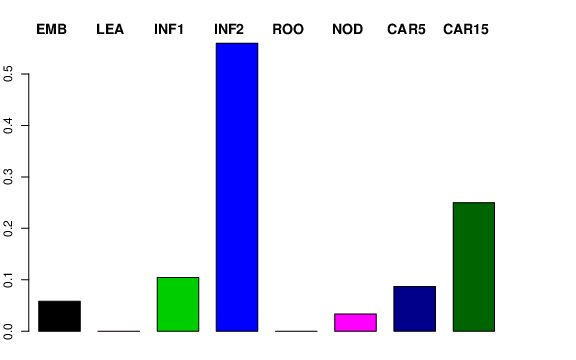 | ROO | Roots from the seedlings (10 cm shoot stage) | 0 | 0 | 0 | 0 |