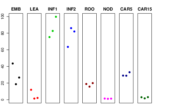 | ROO | Roots from the seedlings (10 cm shoot stage) | 18.9102 | 15.7379 | 19.9694 | 23.1715 |