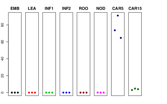 | ROO | Roots from the seedlings (10 cm shoot stage) | 0 | 0 | 0 | 0 |
