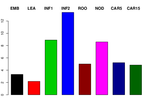 | INF2 | Developing inflorescences (1-1.5 cm) | 12.6011 | 11.5652 | 13.159 | 13.4077 |