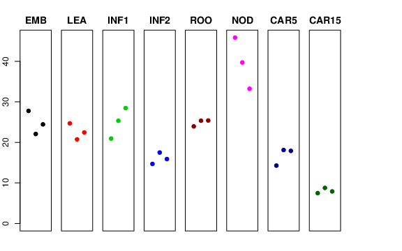| ROO | Roots from the seedlings (10 cm shoot stage) | 23.9492 | 25.3432 | 25.3965 | 0 |