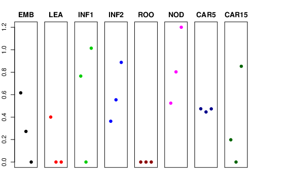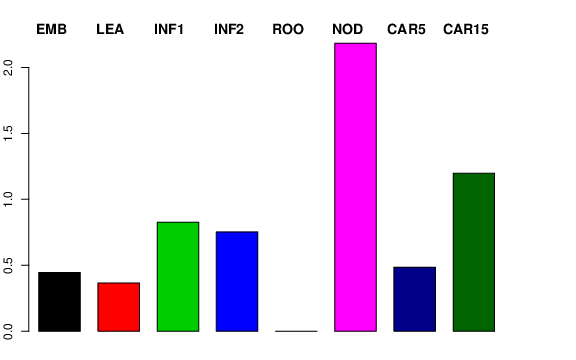 | INF2 | Developing inflorescences (1-1.5 cm) | 0.36346 | 0.554465 | 0.887802 | 0.75305 |