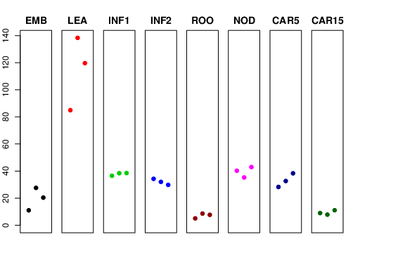 | INF2 | Developing inflorescences (1-1.5 cm) | 34.268 | 32.0255 | 29.8177 | 30.2886 |