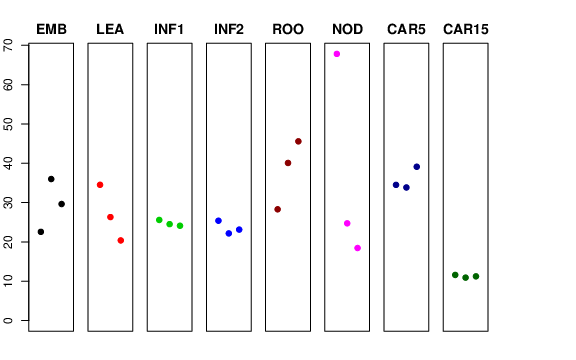 | ROO | Roots from the seedlings (10 cm shoot stage) | 28.2864 | 40.0797 | 45.5819 | 0 |
