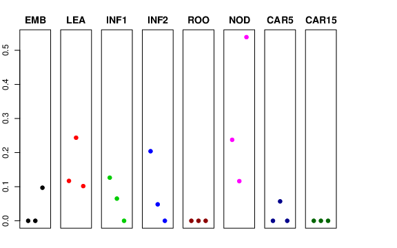 | NOD | Developing tillers at six leaf stage, 3rd internode | 0.237528 | 0.116348 | 0.538656 | 0.47556 |