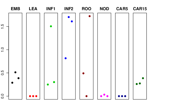 | ROO | Roots from the seedlings (10 cm shoot stage) | 0.49115 | 0 | 1.72258 | 0.389765 |