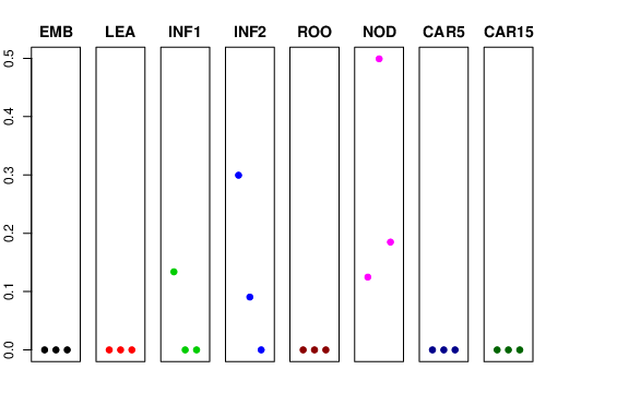 | ROO | Roots from the seedlings (10 cm shoot stage) | 0 | 0 | 0 | 0 |
