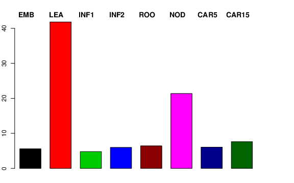 | NOD | Developing tillers at six leaf stage, 3rd internode | 8.96345 | 9.01188 | 10.5867 | 21.3594 |