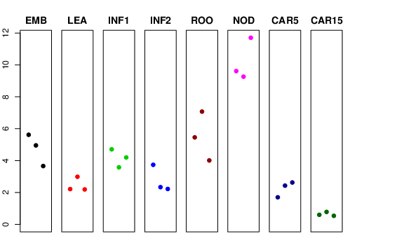 | ROO | Roots from the seedlings (10 cm shoot stage) | 5.45469 | 7.07155 | 4.00775 | 7.84567 |