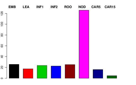| NOD | Developing tillers at six leaf stage, 3rd internode | 41.089 | 36.8276 | 47.9759 | 125.974 |