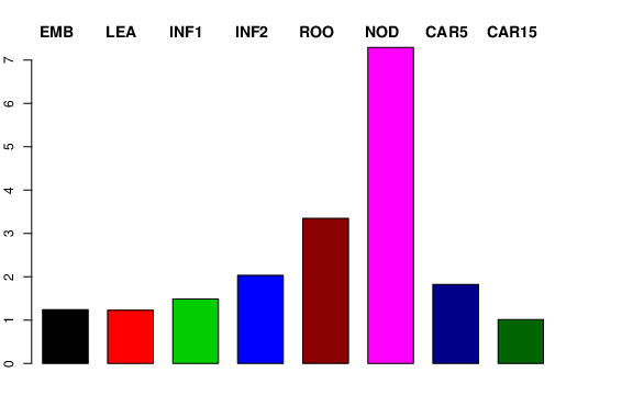 | NOD | Developing tillers at six leaf stage, 3rd internode | 5.74081 | 2.07296 | 3.13432 | 7.29355 |