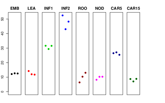 | ROO | Roots from the seedlings (10 cm shoot stage) | 6.39781 | 10.3384 | 13.0279 | 11.1666 |