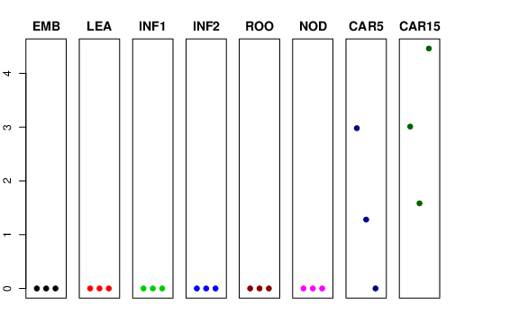 | ROO | Roots from the seedlings (10 cm shoot stage) | 0 | 0 | 0 | 0 |