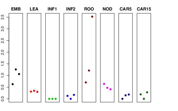 | INF2 | Developing inflorescences (1-1.5 cm) | 0.126277 | 0 | 0.169712 | 0.225593 |