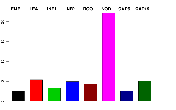 | ROO | Roots from the seedlings (10 cm shoot stage) | 2.09977 | 4.61044 | 2.2417 | 4.32524 |