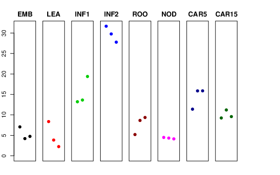 | ROO | Roots from the seedlings (10 cm shoot stage) | 5.19557 | 8.64355 | 9.36645 | 0 |