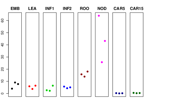 | ROO | Roots from the seedlings (10 cm shoot stage) | 15.7394 | 13.8806 | 18.0383 | 14.3029 |