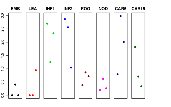 | NOD | Developing tillers at six leaf stage, 3rd internode | 0.195005 | 0.620338 | 0.2606 | 1.56336 |