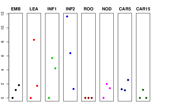 | ROO | Roots from the seedlings (10 cm shoot stage) | 0 | 0 | 0 | 0 |