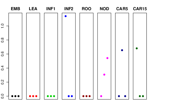 | ROO | Roots from the seedlings (10 cm shoot stage) | 0 | 0 | 0 | 0 |