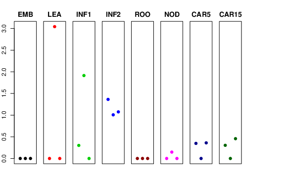 | ROO | Roots from the seedlings (10 cm shoot stage) | 0 | 0 | 0 | 0 |