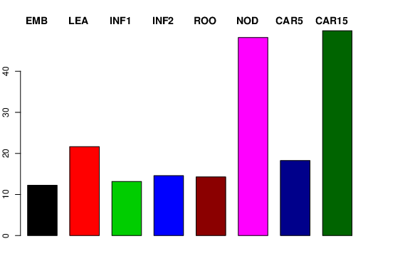 | ROO | Roots from the seedlings (10 cm shoot stage) | 11.8185 | 14.0711 | 12.8169 | 14.2692 |