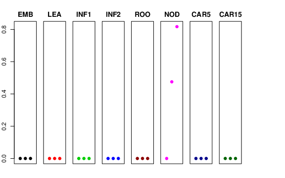 | ROO | Roots from the seedlings (10 cm shoot stage) | 0 | 0 | 0 | 0 |