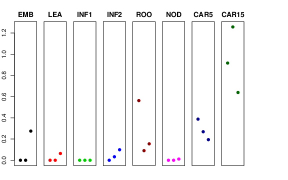 | ROO | Roots from the seedlings (10 cm shoot stage) | 0.562441 | 0.0904179 | 0.154883 | 0.221483 |