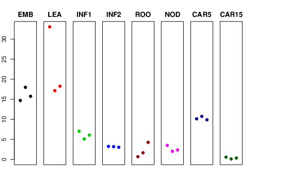 | ROO | Roots from the seedlings (10 cm shoot stage) | 0.665311 | 1.64077 | 4.25239 | 2.15356 |