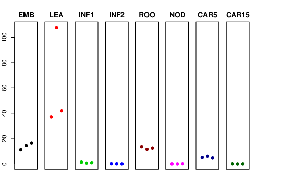 | INF2 | Developing inflorescences (1-1.5 cm) | 0.185548 | 0.133011 | 0.0551284 | 0.159734 |