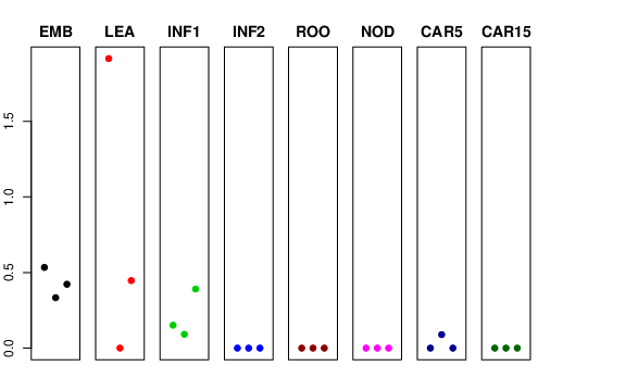 | INF1 | Young developing inflorescences (5mm) | 0.151718 | 0.0912292 | 0.390535 | 0.208836 |