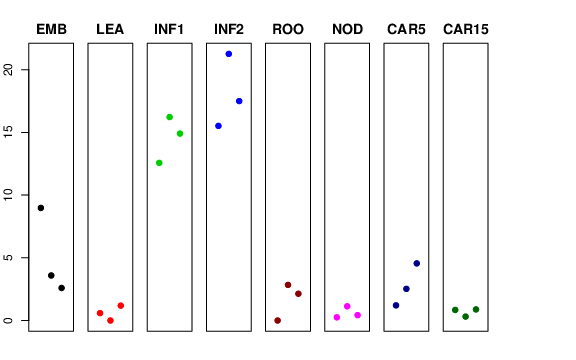 | ROO | Roots from the seedlings (10 cm shoot stage) | 0 | 2.83862 | 2.13398 | 7.10915 |