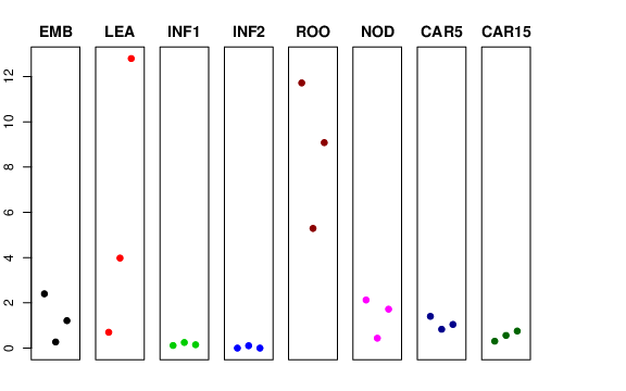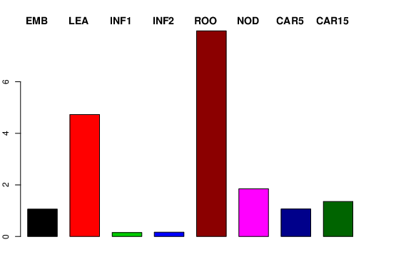| ROO | Roots from the seedlings (10 cm shoot stage) | 11.7186 | 5.28921 | 9.08023 | 7.97245 |