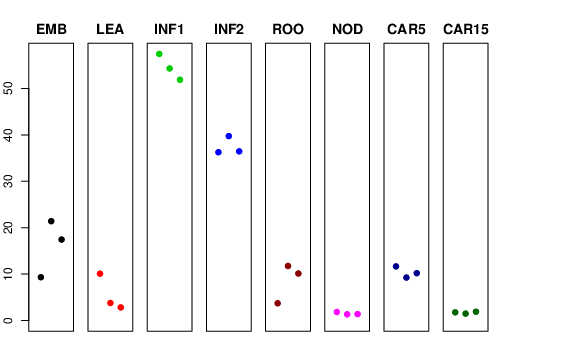 | ROO | Roots from the seedlings (10 cm shoot stage) | 3.71328 | 11.7521 | 10.1272 | 10.9775 |